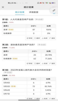 此次知识竞赛主要以两会的基本知识和两会政府工作报告为依据,进行题目设定。并且在提交答案后会生成答题解析,对问卷题目进行回顾,帮助同学们了解两会,有效地加强同学们对题目的印象。