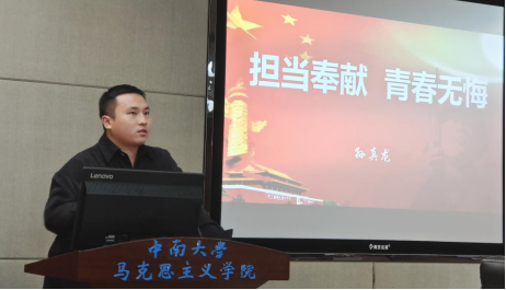 “当兵只是我个人走向自强的一种方式,其实勇敢、担当、自立自强是每个人与生俱来的‘天赋’”。会议伊始,孙真龙同学从参军入伍与志愿抗疫两个方面分享了他的经验故事。2016年9月,孙真龙选择暂时离开校园,踏上开往军营的列车,应征入伍。他说:“一是自己从小就想当兵,二是想为家里减轻负担,三是想通过当兵磨炼自己的意志。”服兵役期间,孙真龙深知责任之重,将身心投入国防事业,戍守边疆,保家卫国,不断磨砺自我,突破自我。2018年9月结束军旅生涯,重返校园。哭过、笑过、感动过,从一名普通的大学生到一名中国人民解放军战士,自强、坚毅是他的座右铭,从刚入伍的心理素质和身体素质都落后于战友,到后来的各项考核都表现优异,他付出了常人无法想象的努力。最终,他凭借优异的表现荣获优秀义务兵和旅嘉奖。军旅生涯提高了孙真龙的身体素质,也培养了他独立自强的品质。
