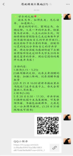 5月16日到5月25日,学生助理通过线上线下多种形式进行“学长的火炬”活动前期宣传。线上主要是通过马院官网通知、各班群通知、助理转发推送的形式进行宣传。线下则是进寝室宣传,给大家介绍活动的过程和意义,鼓励大家积极捐书和领书,并发放提前准备好的活动倡议书及“学长的火炬”书签、明信片、“马小昭”钥匙扣等文创产品。
