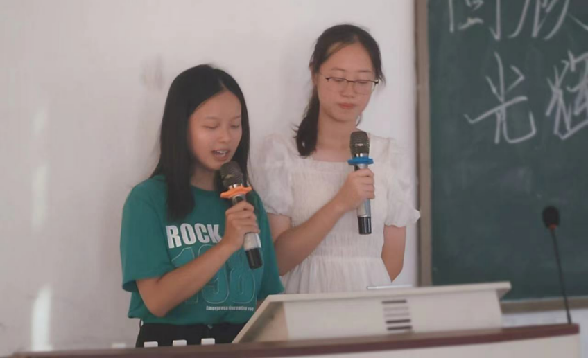 接着,英国威廉集团官网的余兰、常语嫣同学向现场师生演唱【党旗飘扬的方向】,回望建党历程,明晰前行方向,将现场气氛推向高潮。