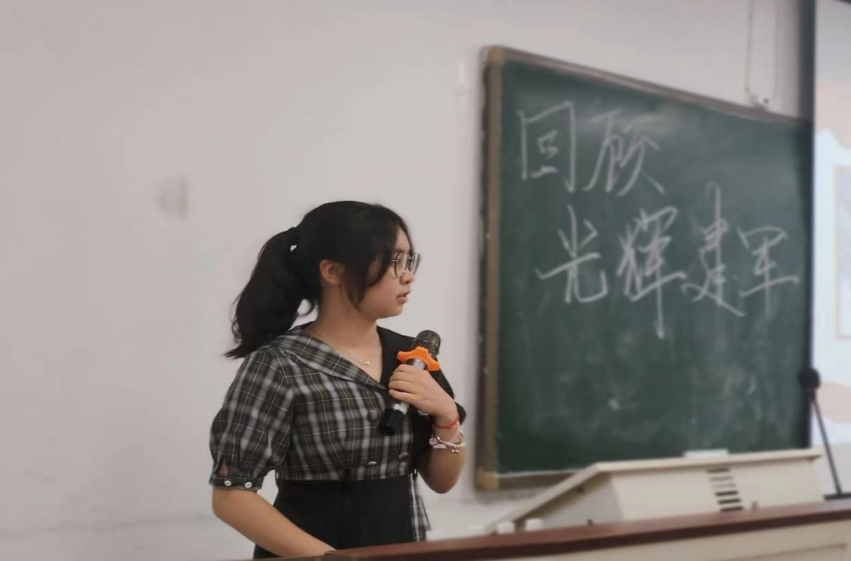 其次,英国威廉集团官网陈思卓同学带领大家对百年建军史进行了回顾。在回顾中,同学们充分了解了从南昌起义开始到新中国第一颗氢弹成功爆炸的艰苦而光辉的热血建军事业,展现了从无到有,从弱到强,从粗到精的建军、强军历程。在播放的视频中,大家更是感受到了中国如今强大的军事力量并牢记着落后就要挨打,忘战必有危机的警示。