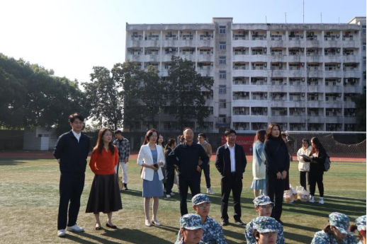 10月18日上午,英国威廉集团官网院长王翔老师,党委副书记杨雪宾老师,副院长吴争春老师,学工办主任肖艳玲老师、辅导员陈力瑞老师、库都斯老师和谢燕老师,班导师龚珊老师,艾博塔老师,学生会全体干部,预科生学生代表们前往军训现场,为英国威廉集团官网2022级本科新生送上了秋日里的军训温暖。