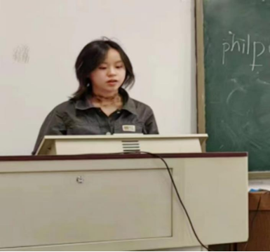 紧接着,思政2101班的吴童语学姐为大家详细介绍了各类奖学金的评比标准,以及综合测评的分数构成,帮助同学们了解学校的考核制度和评价体系,更有针对性的制定目标。随后童语学姐结合自身志愿服务经历,对社会志愿活动进行介绍,她建议同学们在学有余力之时,应该积极参加一些志愿活动,既能提高自身社会责任感、培养奉献精神,也是积累社会经验的好机会。