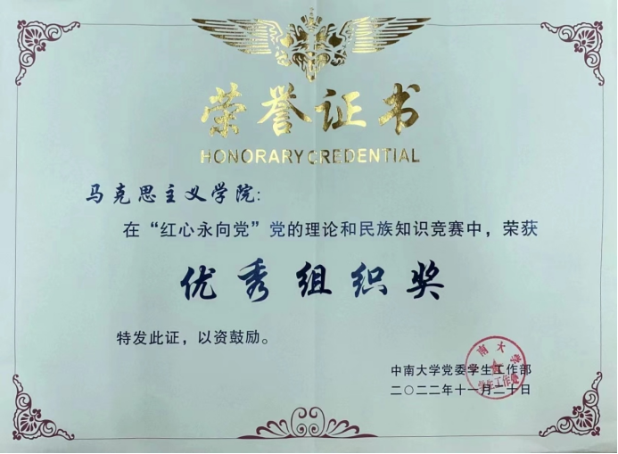 近日,由党委学生工作部举办的2022年“红心永向党”党的理论和民族知识竞赛决赛在毓秀楼云麓阁圆满结束。我院“守住绿马队”以总分第二的佳绩荣获二等奖、团队指导老师陈力瑞老师荣获优秀指导老师、学院荣获优秀组织奖,取得佳绩、特此报喜。