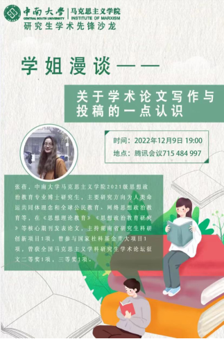 张蓓学姐以“学术论文写作与投稿的一点认识”为题,围绕科研目标、学术态度、文献阅读、助研工具与投稿流程五个部分依次进行详细讲解。强调做科研不仅要注重发挥主观能动性,树立问题意识,也要重视文献综述的重要性,要将文献综述作为研究主题的学术地图,通过梳理古今中外重要学者的相关观点,加强对主题的把握。同时也要准确掌握期刊的特点和投稿要求,这样可以提高命中率。最后,学姐鼓励大家在科研道路上要自信,有勇气、不放弃。