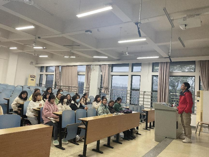 之后,辅导员陈力瑞老师做了发言。陈老师帮同学们梳理了几个重要的时间节点。一是2月和3月,陈老师贴心地提醒大家,班上打算考研、考公的同学,要早做准备,趁二三月份学长学姐们刚参加完研究生招生考试、选调生考试或各省公务员考试之际,及时向他们请教备考经验或请他们推荐分享优质复习资料。二是4月和5月,要密切关注学校学院团学部门组织的大型活动,积极筹备和举办班级团支部的团建活动。三是6月,在毕业季到来的时候,建议同学们准备一个有意义的用以欢送和表达祝福的集体节目。