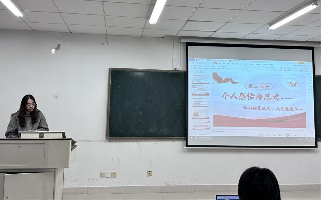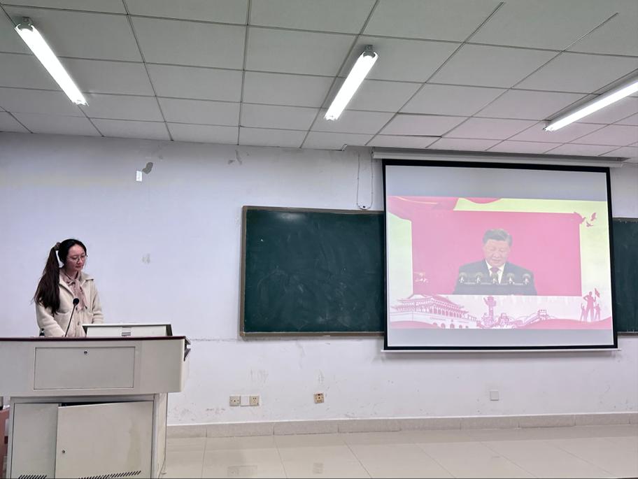 紧接着,文化活动部副部长蒋玉洁通过学习二十大精神意识到青年的责任与使命,提出共勉:我们要不断提高政治判断力、政治领悟力、政治执行力,为实现第二个百年奋斗目标,实现中华民族伟大复兴而奋斗。作为学生会组织的一员,我们需要培养自身表达能力、组织能力和应对各自复杂情况的能力,立志做新时代好青年。