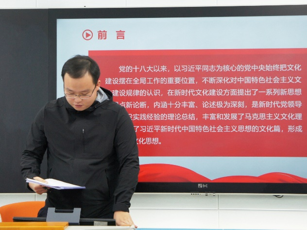 11月17日晚七时,我院在三教408教室开展以“凝聚引领•探赜习近平文化思想”为主题的东方红讲堂·第三届研究生学术先锋沙龙活动。本次沙龙特邀2021级博士研究生狄神武和2023级博士研究生肖劲峰主讲,学院领导胡栋材副院长,胡文根老师、胡长海老师、库都斯·克依木老师莅临指导。