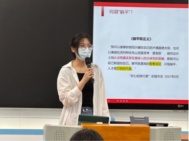 主讲环节,陈显川学长从“在中国古史中中发现社会主义”这一现象入手分析其对新时代青年对启示。通过对郭沫若的《马克思进文庙》、杨度的《论圣贤同志》、陈焕章的《孔门理财学》和胡适的《王莽——1900年前的一个社会主义者》等文章中涉及社会主义的相关内容进行具体分析和对“在中国古史中发现社会主义”这一现象进行了整体简析,使同学们明白作为新时代青年要做到预流而非逐流,注重对传统文化、马克思主义皆继承式创新,明确“弘道”的两个责任。