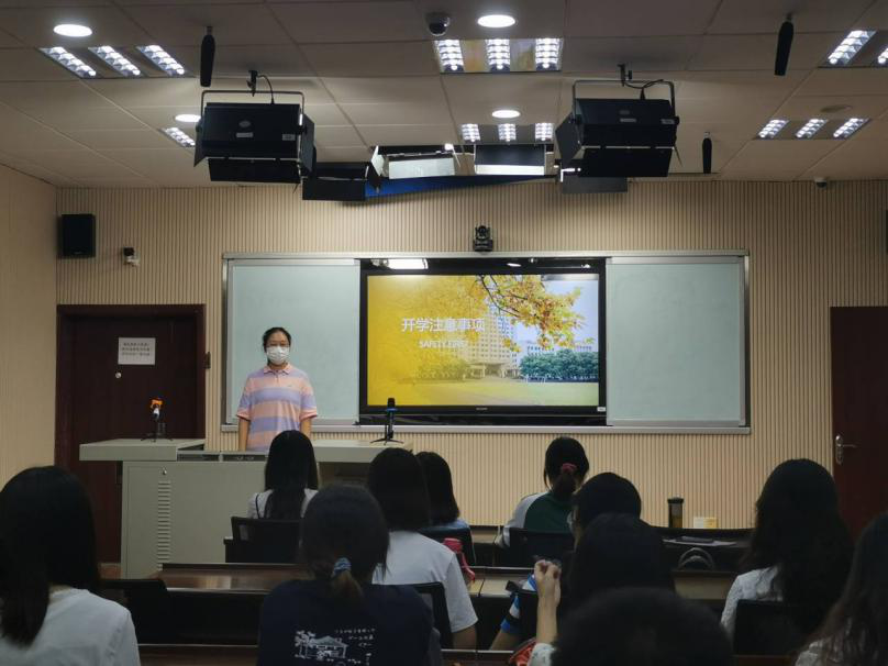 最后,由杨雪宾副书记发表开学寄语。杨书记认为第一个方面,需要把大家进校之后属于一个什么样的状态和大家说清楚。目前,教育部到湖南省、学校,给我们所定的基调是常态化疫情防控时期。一是指我们个人日常的防控,出现异常及时报告。二是我们要恢复正常的学习生活秩序。第二个方面,大二我们要对自己的人生要有新的安排,在这个过程中要多与老师请教学问、人生规划,我们一定要有对自己负责任的思考。此外,大二前三名可以考虑选专业的问题,在这个方面我们鼓励每个人为自己的前途负责任。我们学校现在也有一个新的政策即本博,大家也可以有所考虑,到后期正常推免保研也会开始。杨雪宾书记还重点就担任学生干部的意义与价值与同学们进行了探讨。我们需要转变观念,为同学服务是我们自我提升的一种实践。此外,学院为同学们完全开放。学院为大家提供了自习室、阅览室,也能够为大家的心愿书单提供一定的支持。作为人文社科的学生,我们一定要多读书,大学四年是我们最宝贵的可以好好读书的四年。