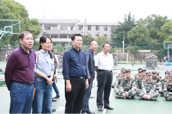 院领导们纷纷席地而坐,与学子交谈。了解他们在学校生活的现状,并为学子们加油打气,“宝剑锋从磨砺出,梅花香自苦寒来”,鼓舞学子们在难得的军训生涯中磨砺自身,挑战自我。希望学子们主动迎接并克服军训带来的挑战与困难,积极主动接受军人教育,树立团队精神,培养为集体增光添彩的集体意识。