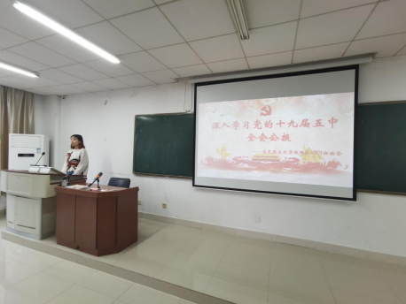 会议伊始,学工办主任、研究生辅导员秘金雷老师开宗明义,鼓励大家多开展此类主题班级活动,加强交流探讨,并号召青年在改革创新中实现人生理想,做好未来发展规划。随即副班长刘小兰梳理了党的十九届五中全会公报的基本内容与公报中几大需要注意的新表述。