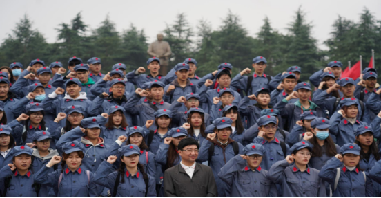 到达毛泽东同志铜像广场后,同学们换好红军服,举行向毛泽东同志铜像敬献花篮仪式,在铜像前,老师和同学们怀着敬仰之情,整齐列队向毛泽东同志铜像三鞠躬,并绕毛泽东同志铜像一周,表达对伟人的深刻缅怀和敬仰之情。仪式结束后,在毛泽东同志铜像广场,全体同学重温入团誓词,在庄严的团旗下宣誓,让同学们谨记入团时的承诺,时刻提醒大家肩上的使命与责任。