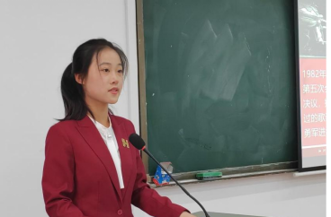 首先,王爽爽同学向与会人员介绍了国歌、国歌法及国旗的由来。国歌不仅仅是一首乐曲,而且蕴含着中华民族对于独立、解放的渴望,象征着无数人民经过惨烈的牺牲与不屈的奋斗才换来的新中国的成立与富强。
