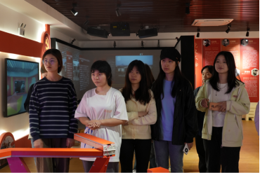 活动伊始,在讲解员的带领下,同学们参观了思政实践教育中心展馆,党史互动滑轨屏、红色留声亭、党建电子书瀑布流阅读机、“四史”AR展示台……科技的现代化与历史的厚重感有机结合,同学们置身于党史长河当中,沉浸式的感受党史的发展脉络和红色革命的光辉历程。
