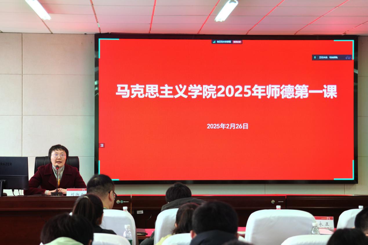 2月26日下午,学院认真贯彻落实学校总体工作部署,在学院407报告厅开展新学期师德师风专题教育“第一课”,邀请校党委教师工作部刘湘云副部长作题为《守护教育的温度——从规范学习中守牢师德底线》专题讲座。专题讲座由学院党委书记汪平主持,全体院领导和教职工参加。