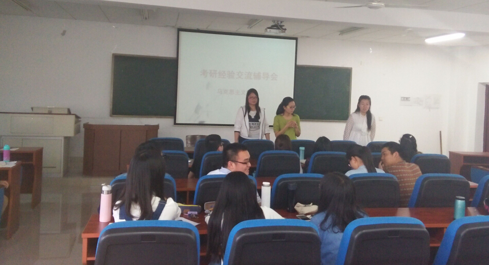 为增强我院学生职业生涯规划意识,进一步使学生明确考研目标,掌握相关考研技巧,016年4月13日下午15时,我院特举办“考研经验交流辅导会”。会议邀请到我院副院长彭升教授、辅导员秘金雷老师以及大四优秀考研保研学生代表,为大家传授考研技巧和信息。交流会由团学会学术实践部部长舒长风主持。