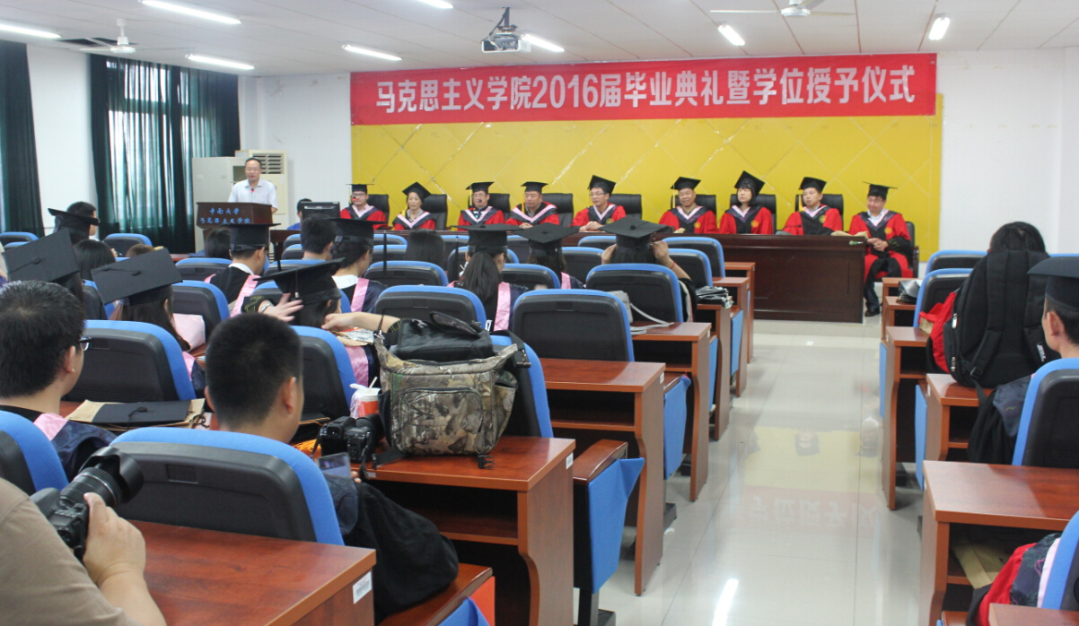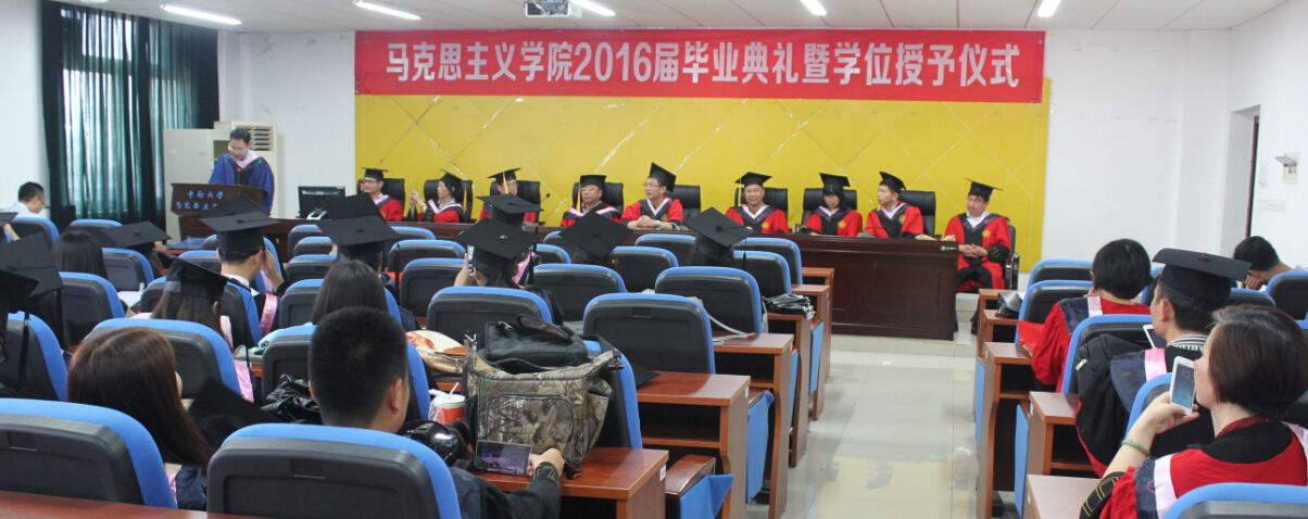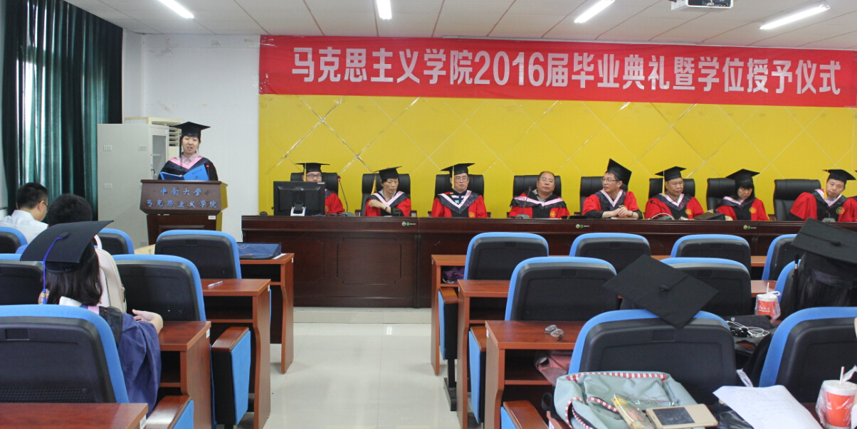 2016年6月17日上午九点,我院2016届毕业生毕业典礼暨学位授予仪式于三教407隆重举行。院长张卫良、党委书记张若飞、副院长王翔、副院长颜峰、副院长刘志刚等院领导和谭希培教授、胡凯教授、曾长秋教授、罗会钧教授、贺才乐教授等教师代表以及学院2016届全体本科、研究生毕业生出席了此次毕业典礼。典礼由党委副书记杨雪宾主持。