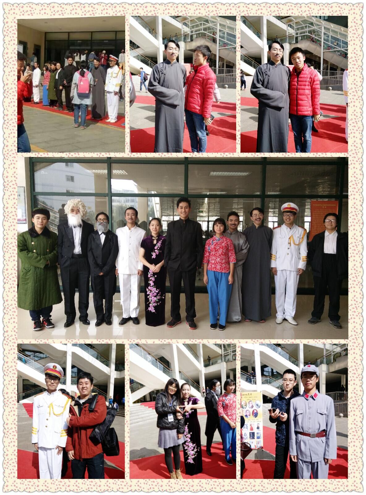 虽处冬季,但27日这天中午的太阳格外明媚,天公作美,同学们参与活动的激情也随之高涨。11点整,伴着红色主题背景音乐的响起,材料院的矩形方阵表演的《歌唱祖国》闪拍作为活动的友情出演开场舞立即吸引了大量观众,场面也开始变的热闹起来。随后,COSER们伴着红色经典音乐,踩着象征红军长征简易路线的“七”字形红毯,开始依次展示cosplay的“伟人”风采。接下来就是最激动的与现场观众互动环节——根据COSER们的一句话的不露角色名的口号猜COSER角色,并与COSER们拍照合影留念,每位观众都有四次拍立得现场打印免费照片的机会。主持人把话筒交给了红毯上的COSER们之后,“为中华之崛起而读书”、“做一颗永不生锈的螺丝钉”……一句句誓词振聋发聩,现场掌声雷鸣。二食堂附近的学生纷纷被COSER们吸引,前来猜伟人的身份并与他们合影、打印照片。短短的两个多小时的时间里,通过猜伟人身份、回答与伟人们的相关问题并与伟人合影等活动,观众们对马列主义和红色文化产生了浓厚的兴趣,也加深了对红色文化的心理认同。