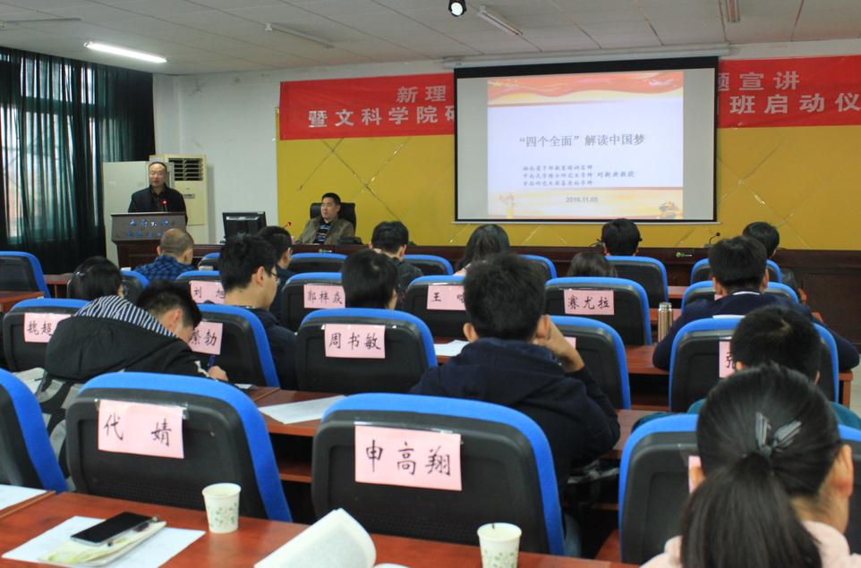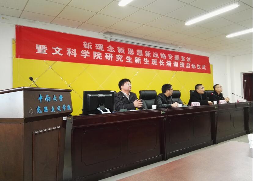 11月5日上午8:30,新思想新理念新战略专题宣讲暨英国威廉希尔公司研究生新生(文科)班长培训班启动仪式在三教407顺利举行。启动仪式由马克思主学院党委副书记杨雪宾主持,出席活动的嘉宾有学院党委书记张若飞、研究生工作部姚勇副部长,副院长王翔,研究生辅导员秘金雷等。英国威廉希尔公司研究生(文科)2016级30余位新生班长和我院研究生、本科生参加了本次培训。 活动分为两个部分,首先举行开幕式,之后由我院博士生导师刘新庚教授为新生班长进行理论知识培训。开幕式阶段,张若飞书记和姚勇副部长为活动分别致辞,张书记指出当前和今后一个时期的重要政治任务,就是要深入开展学习和宣传党中央治国理政新理念新思想新战略,深刻理解和把握习近平总书记系列讲话精神。姚勇副部长对新生班长们提出价值引领、能力提升、身心健康三点建议,着重强调作为班长要有担当,注重学术创新能力和组织协调能力的提升。随后研究生新生班长廖高斌作为新生班长代表发言。最后刘新庚教授作了主题为“四个全面解读中国梦”的报告,报告深入浅出,图文并茂,并用习近平总书记曾说过的“不忘初心,继续前进”来激励我们为实现中华民族伟大复兴的中国梦而不懈奋斗!  本次活动通过学习和贯彻习近平总书记系列讲话精神,积极弘扬和践行社会主义核心价值观,对切实提高班长的思想水平和业务水平发挥重要作用,同时促进了文科学院新生班长间的学习与交流,增强研究生班集体的凝聚力和战斗力。 |