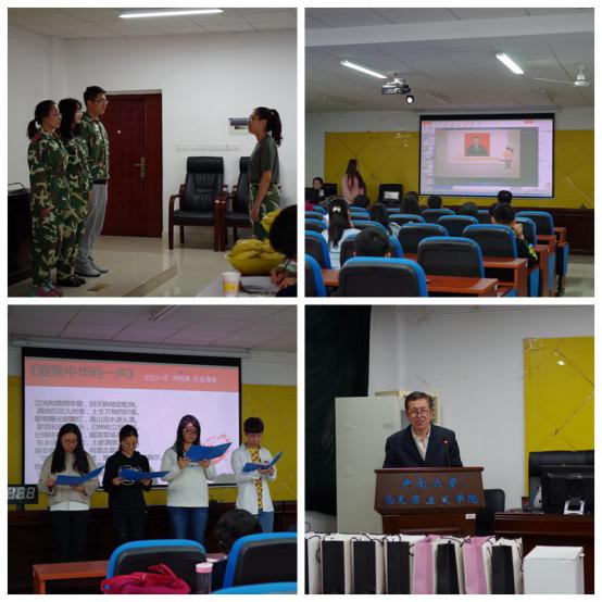 在第一环节中,五组同学分别围绕“绿水青山美丽中国”、“国防军改强军护国”、“民族团结之花长盛”、“一带一路和谐共赢”、“文化自信凝心聚力”这五大主题进行了主题学习成果汇报。参赛选手紧扣主旨、大胆创新,采用ppt展示、小话剧、诗歌朗诵、歌曲演唱等方式,为同学们带来了一次别开生面的理论知识学习,其中,第一组同学带来的新兵入伍小短剧拿到了此轮比赛的最高分,孙梦云老师对同学们的精彩表现给予了肯定和赞赏。