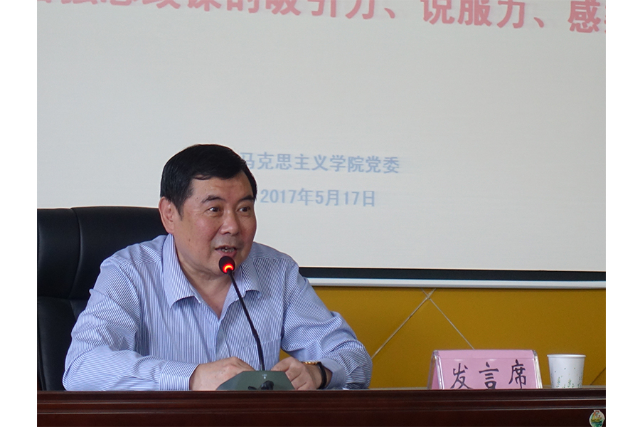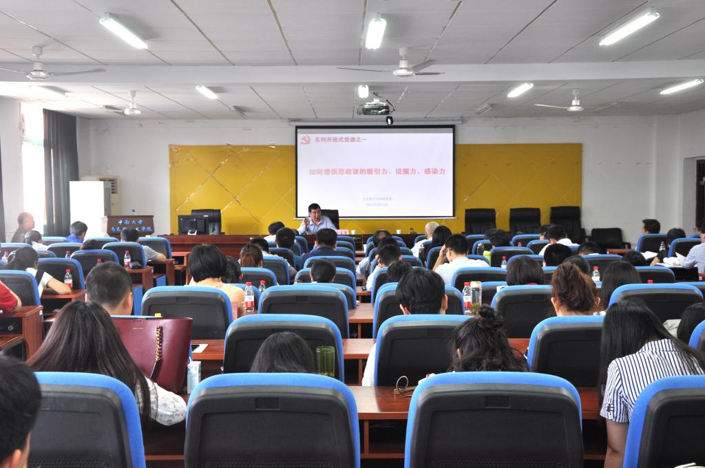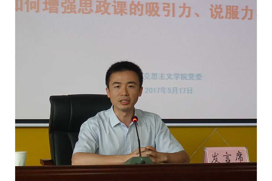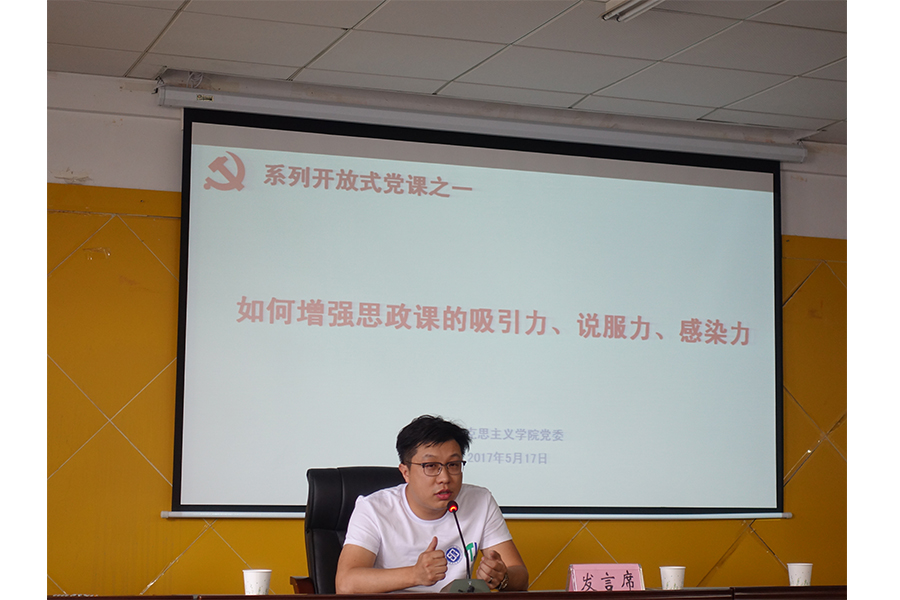 5月17日下午三点,我院在南校区三教学楼举行开放式党课,探讨如何增强思政课的吸引力、说服力、感染力。校党委书记高文兵、学院领导班子成员、党员教师及学生代表参加了讨论会。本次开放式党课由张若飞书记主持。