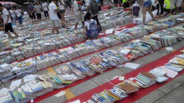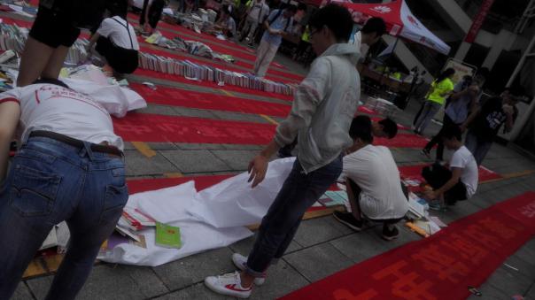在活动当天,学生助理们一大早便将所有书籍搬往二食堂前坪,并细心地分类整理书籍以便同学们查找所需。尽管当日天气炎热,现场气氛却是异常火爆,领书的同学络绎不绝,十分热闹。
