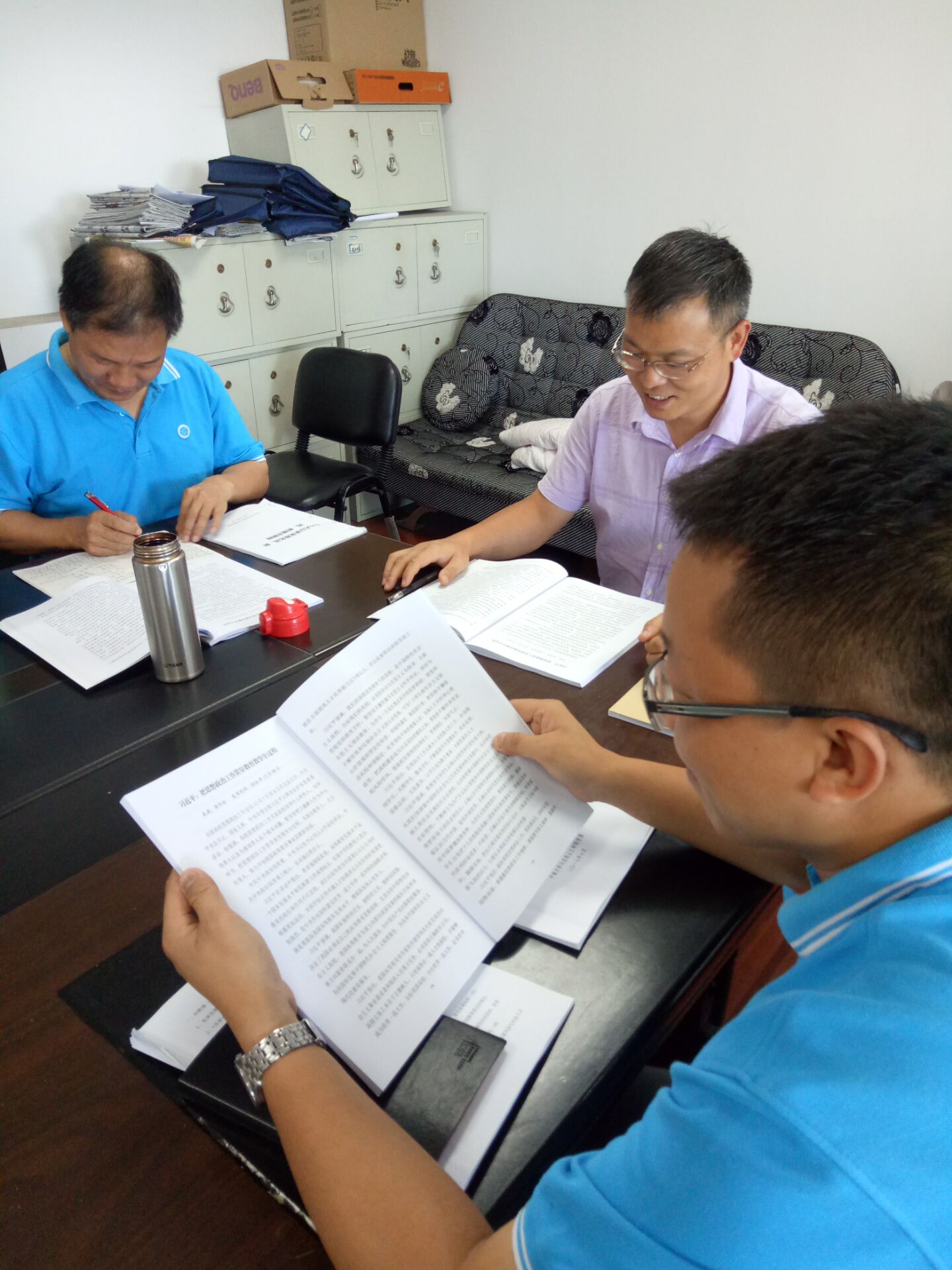 紧接着,是全体教师学习第四十四期学习资料和互相交流阶段。每位老师都进行了热烈的交流讨论,分享了自己的心得体会,加深了对于思想政治工作和意识形态问题的深刻理解。一致认为,为贯彻习近平总书记系列重要讲话的精神,把意识形态工作放在首要位置,要不断加强对习近平总书记系列重要讲话的学习,用高度的责任感“担马列大道,育时代英才”,不断加强我院的马克思主义理论研究的学术渗透力和影响力,不断巩固和夯实马克思主义思想的指导地位。