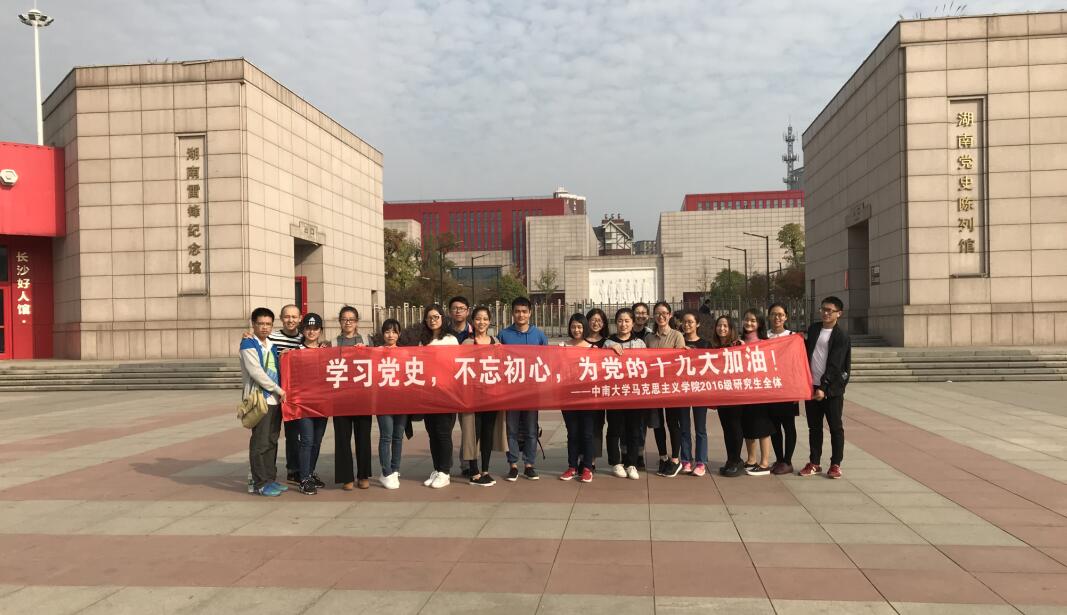 为增强班级学生道路自信、理论自信、制度自信和文化自信,提高班级凝聚力和归属感,进一步深入学习贯彻党的十九大精神,2017年11月9日下午,我院2016级全体研究生全体开展“学习党史,不忘初心”班级主题活动。全体同学在班长廖高斌带领下集体参观学习湖南省党史陈列馆和雷锋生平事迹陈列馆。 参观过程中,大家以时间为轴目睹了中国从“站起来、富起来到强起来”的伟大奋斗历程,深入学习了湖南作为红色革命根据地在土地革命战争、解放战争、新中国成立时期的革命历史,深切感受到在这一时期所涌现的一大批仁人志士的大无畏革命精神,深刻体会到“只有共产党才能救中国”的本质内涵;“学习雷锋好榜样,全心全意为人民服务”,只有将人民的利益、人民的需要作为我们党的出发点和落脚点,只有时刻“铭记为什么人,达到什么理想目标”,我们党的执政地位才能稳固,国家治理才能从“善政”变为“善治”,社会治理才能实现长治久安,中华民族才能实现伟大复兴。