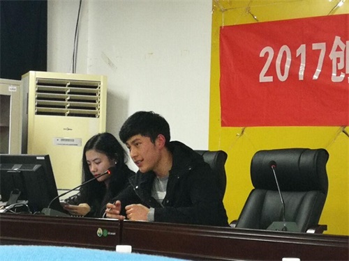 随后,第十五届“挑战杯”全国大学生课外学生科技作品竞赛特等奖获得者——山河青年公益发展中心团队代表朱佩同学介绍创新创业的经验。山河青年公益发展中心团队是一个多领域、多功能、跨专业、辐射面非常广的团队。首先,朱佩同学从学术、合作、实践和社会组织等方面介绍了团队的工作及所取得的成就;第二,他又从导师的层面上阐释了导师的重要性;第三,他从研究足迹、研究思路和研究方法等方面出发,来解答同学们应该如何去开展团队工作;最后,朱佩同学介绍了团队建设的问题,提出团队要想往前走,必须及时转变研究方向,切忌浮躁,要坚持到底的观点。 紧接着,第十五届“挑战杯”全国大学生课外学生科技作品竞赛三等奖——田野调查践行者团队代表陈力瑞和严欣同学则从组建团队和寻找导师的角度给同学们提出建议。他们特别提出,同班同学组建小组的优势,找导师要找身边真正关心你、愿意和你一起奋斗的导师。二人在课题的选择及申报方面也向同学们提出了建议,帮助同学们尽快熟悉了升华杯的程序。