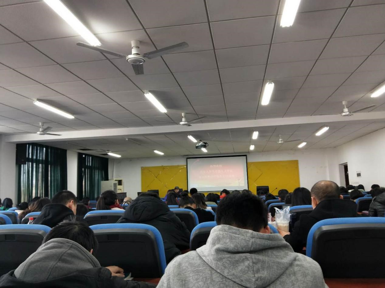 之后,梅教授正式开始讲座。讲座分为“举旗抓纲、把握报告的整体精神”,“对中国特色社会主义进入新时代这一重大判断的看法”,“从‘五学’着手,学习十九大报告”等三大部分。