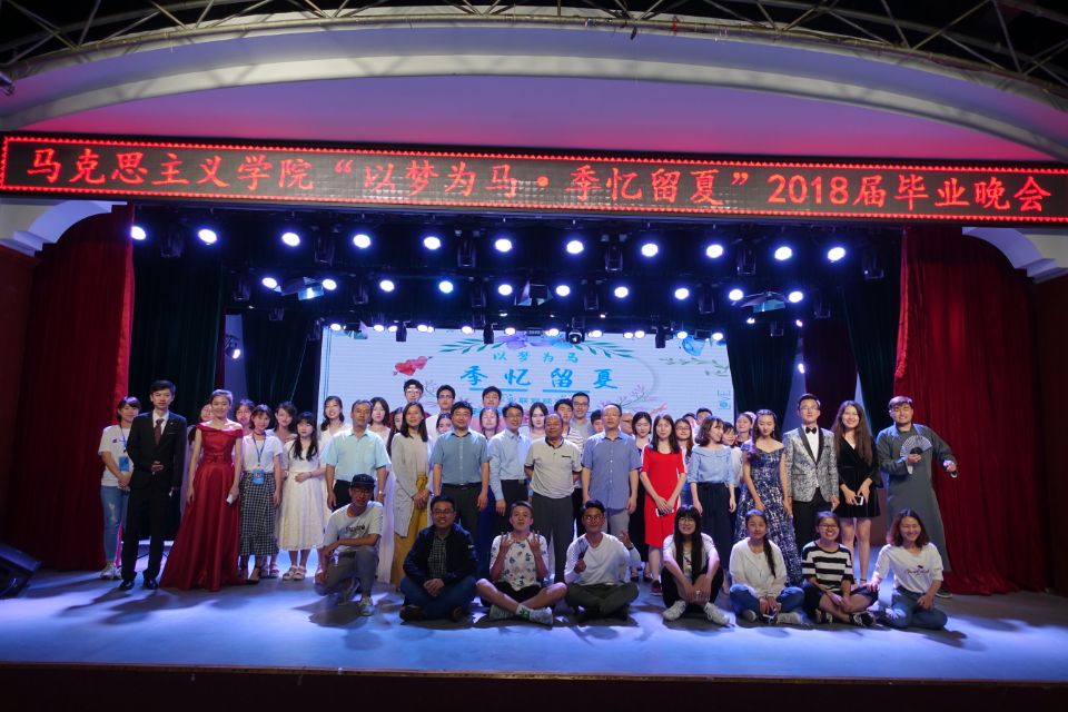 晚会伊始,学院院长张卫良为全体毕业生的深切致辞并表达了对他们的的关怀与祝福。此次晚会共准备了十个精彩的节目,每个节目的样式都有着别具一格的风采,首先是由“bling bling舞团”带来的舞蹈,小姐姐们的开场舞引来了观众们不少的欢呼声。其次,吉他社也不甘示弱,一首“易燃易爆炸”点燃了晚会的氛围,同学们挥舞着荧光棒,在屏幕上纷纷写着内心的不舍与眷恋。更有少数民族同学为大家献上的柯尔克孜舞,以及吾尔肯、特尔叶克、李林杰同学的极为有趣的以马院趣事为主题的相声表演等。可以说每位表演的同学都将自己的才艺发挥到了极致。