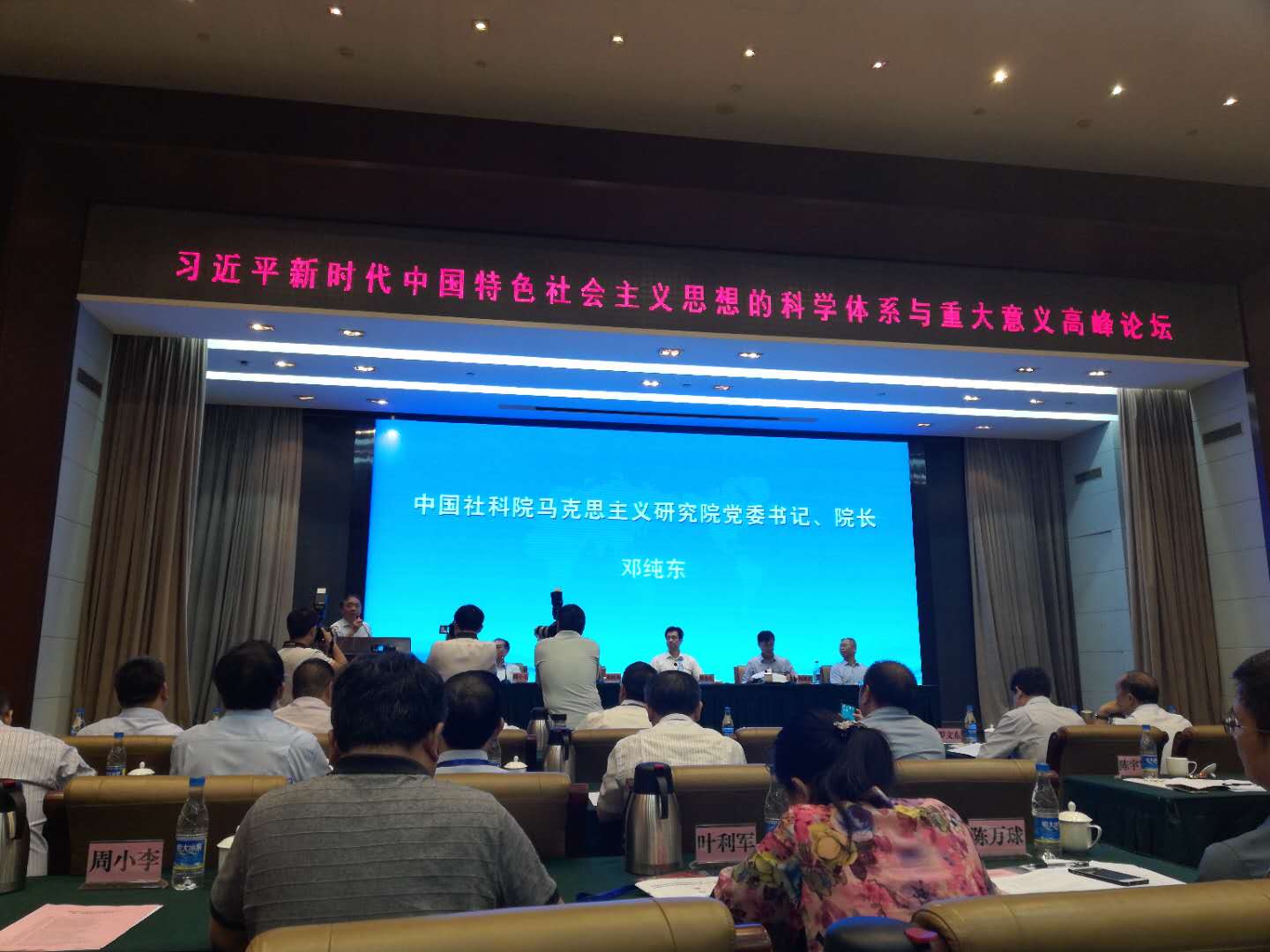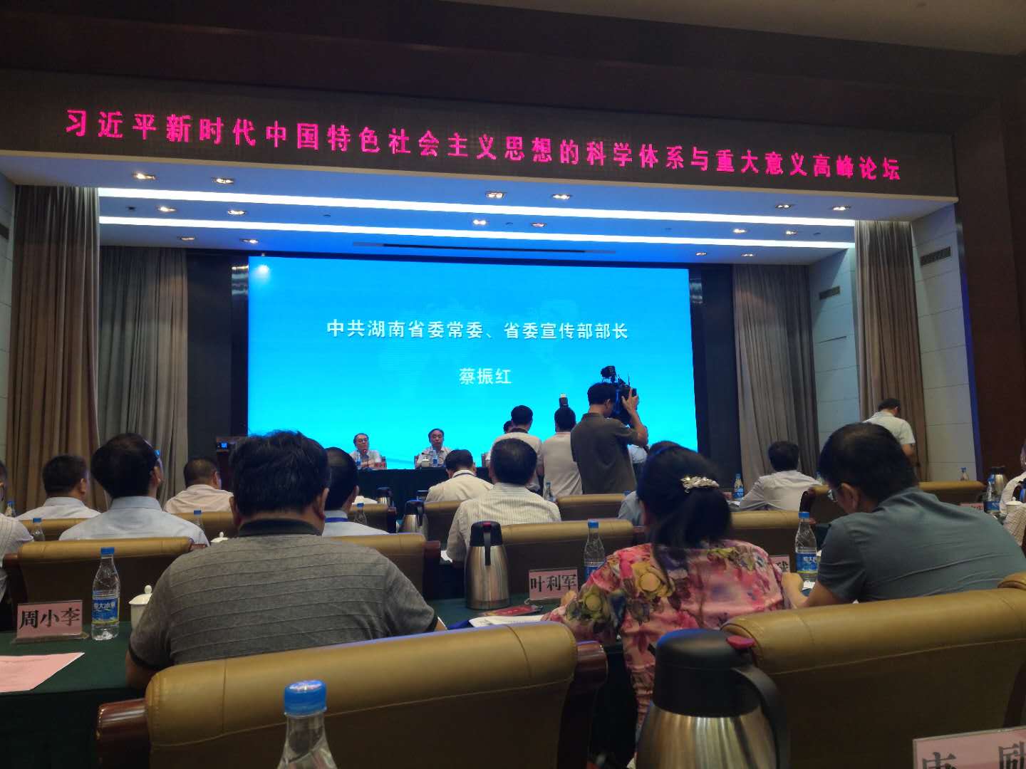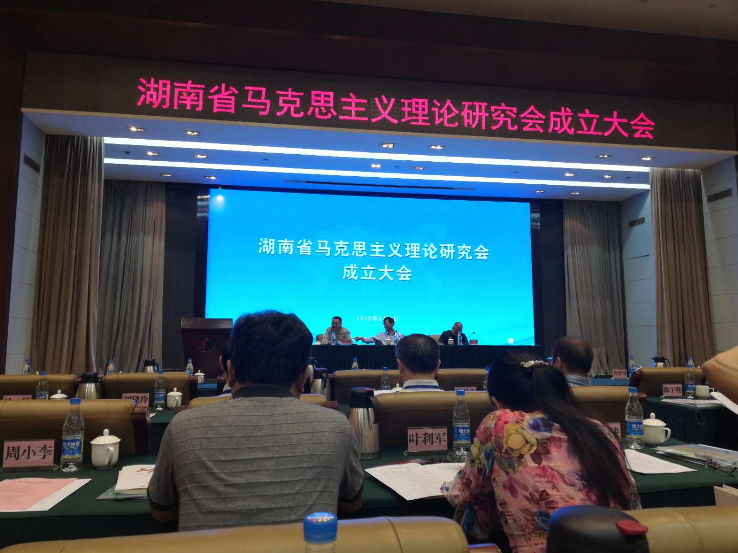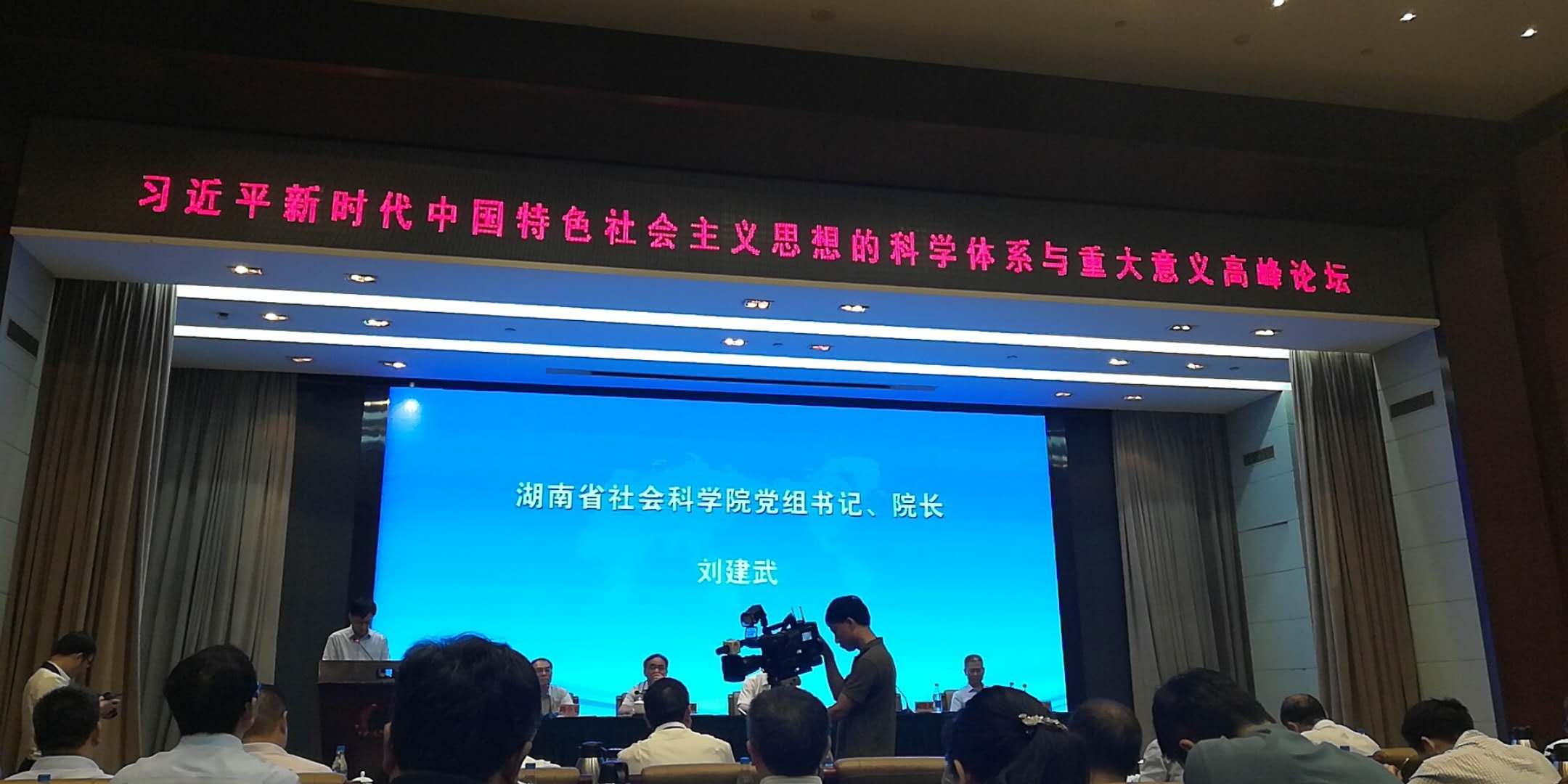 6月9日上午,湖南省马克思主义理论研究会成立大会暨“习近平新时代中国特色社会主义思想的科学体系与重大意义”高峰论坛在蓉园宾馆召开。中共湖南省委常委、宣传部长蔡振红、中国社科院马克思主义研究院党委书记、院长邓纯东、湖南省社科院党组书记、院长刘建武等领导出席。我院张卫良院长、王翔副院长、贺才乐院长助理、李霞飞老师、刘方平老师与会。