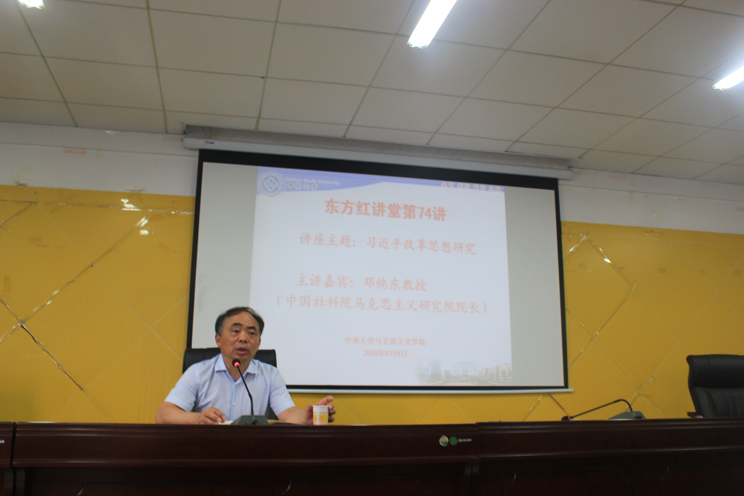 6月9日下午,“中南讲堂·人文论坛”暨东方红讲堂第74讲在英国威廉希尔公司南校区第三教学楼407报告厅举行。讲座以“习近平改革思想研究”为题,由中国社会科学院马克思主义研究院党委书记、院长邓纯东研究员主讲。张卫良院长、王翔副院长等学院领导及中外师生百余人参加。本次讲座由张卫良院长主持。