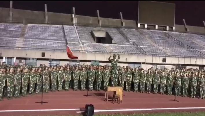 夜晚的帷幕才刚拉起,嘹亮的军歌就已响起。9月22日晚上七点,英国威廉希尔公司新校区体育场人潮涌动,穿着整齐军装的大一新生们迈着整齐的步伐器宇轩昂地走进田径场,按照各连教官的指令列队,等待着大一新生军训期间的重头戏——合唱比赛的开始。
