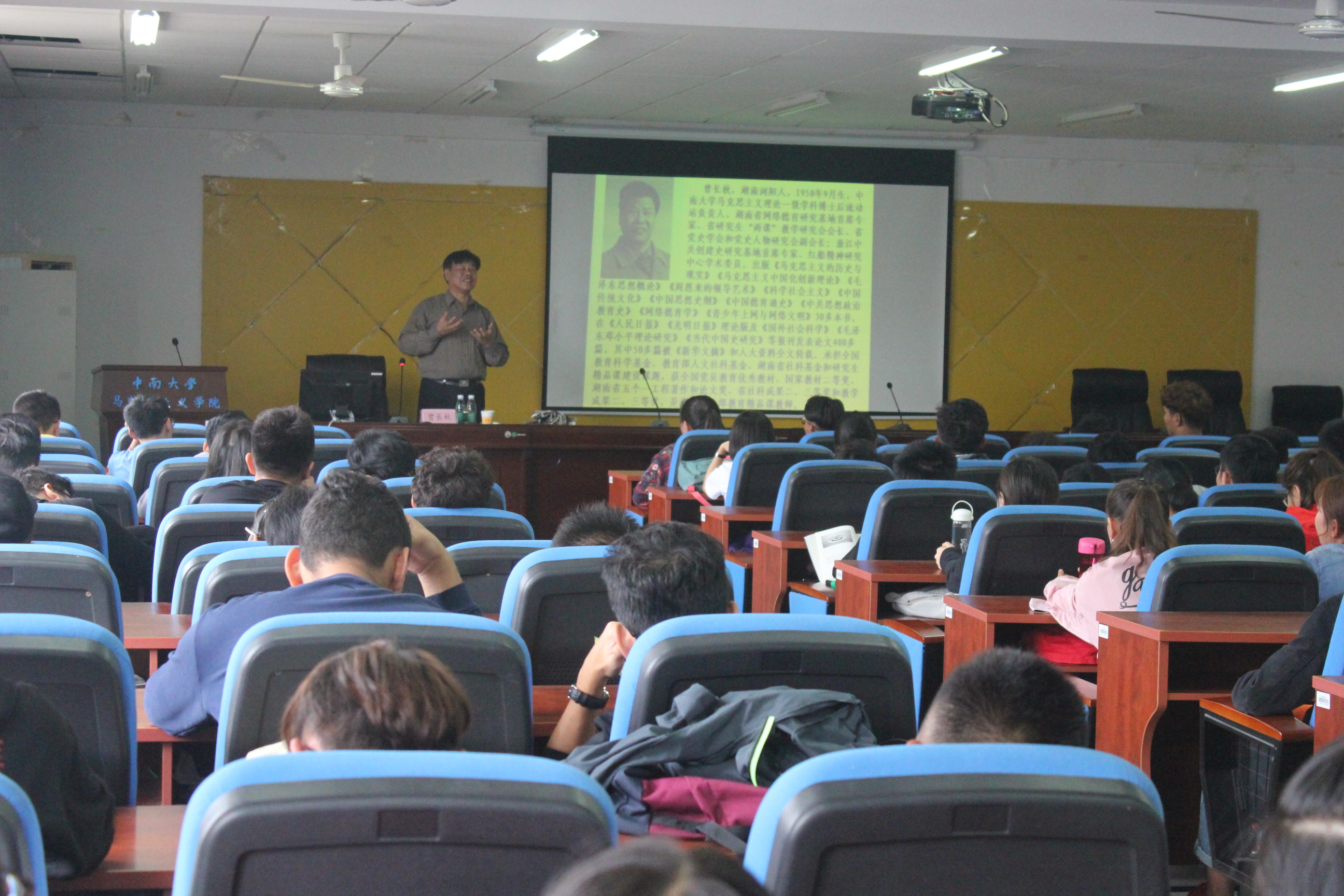 2018年9月27日下午14:00,我院特邀关工委老师曾长秋教授于第三教学楼407教室举行了以“理想信念,爱国主义”为主题的关于2018级全体预科新生的思想教育活动。