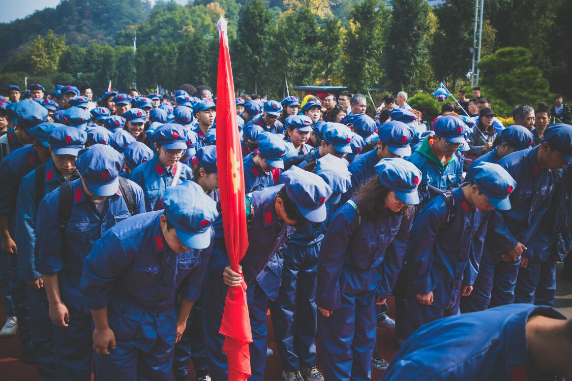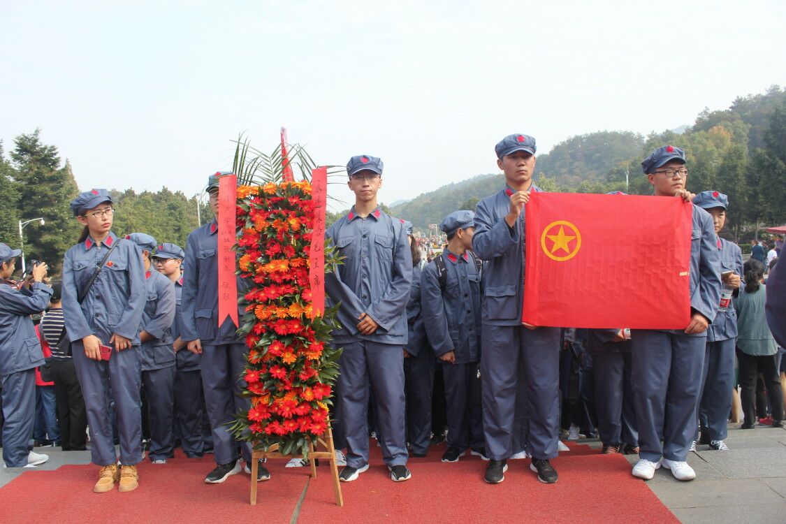 到达目的地后,同学们换上统一的红军军服,在导游的带领下前往毛主席铜像广场,2名学生代表敬献花圈,重温入团誓词,全体学生向主席头像鞠躬敬礼。紧接着,同学们参观了毛泽东同志纪念馆,馆内陈列的历史文物及相关历史事件的具体介绍让同学们在贴近历史、追寻先人足迹的同时体会到革命历程的艰辛和当今和平生活的来之不易。