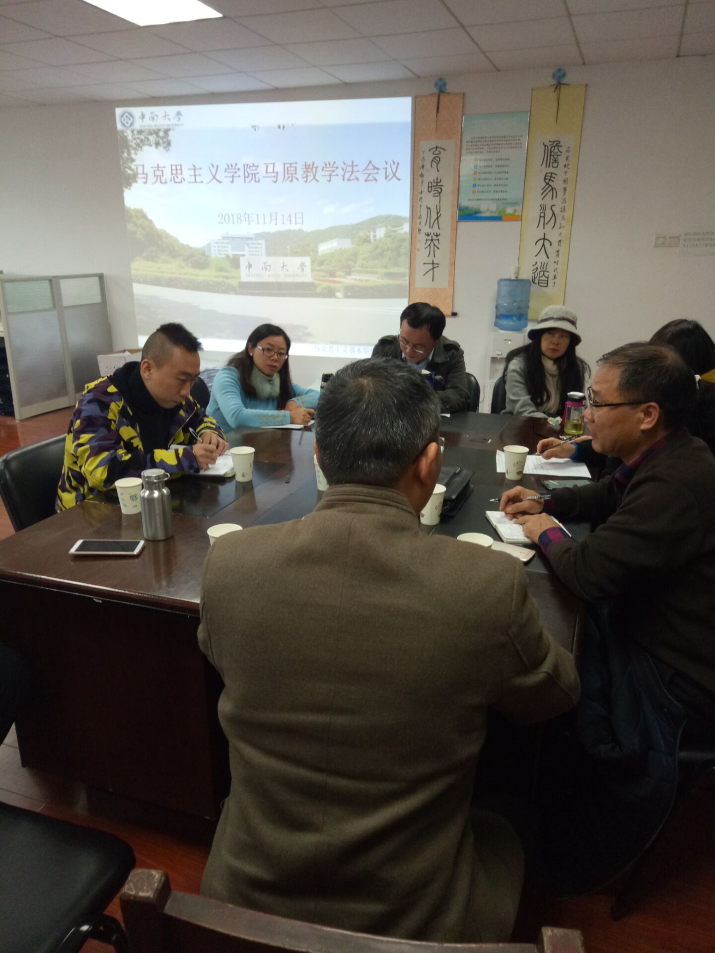 11月14日下午3:00,马克思主义基本原理教研中心阶段性教学法会议在三教学楼602室召开。马克思主义基本原理教研中心全体教师参加了会议。此次会议由教研中心主任王浩斌主持。会议主要讨论了以下三大问题: 首先,关于实践问卷的制造与运用问题。教研中心主任王浩斌指出,实践教学在整个教学过程中具有重大作用。在实践教学过程中,大家应该结合本校学生特点,深入研究其内容与落实的具体形式。随后,王浩斌就实践教学检测卷的选择题、辨析题、简答题、论述题以及操作题等进行了详细的分析,并提出了实践检测卷的运用方法与整理方法。 其次,关于慕课的相关工作问题。教研中心主任王浩斌指出,马原中心制作的慕课现已基本上线,并收到了很好的教学效果。但仍然需要大家做好相关的慕课后续教学工作,希望大家要把慕课与面授进行有效的衔接,实现线上与线下的有机融合。同时,王浩斌就慕课教学过程中出现的常见问题进行了汇总与分析,并提出了具有针对性的策略与方法。 最后,关于本学期期末考试筹划问题。王浩斌主任一方面总结了上学期的考试情况,另一方面又结合本学期的具体实际指出了此次期末试卷制作的方向。对于期末考试试卷的题型与内容问题,全体任课教师进行了积极的讨论,并集中大家的建议与智慧,得出了初步的制卷方案。