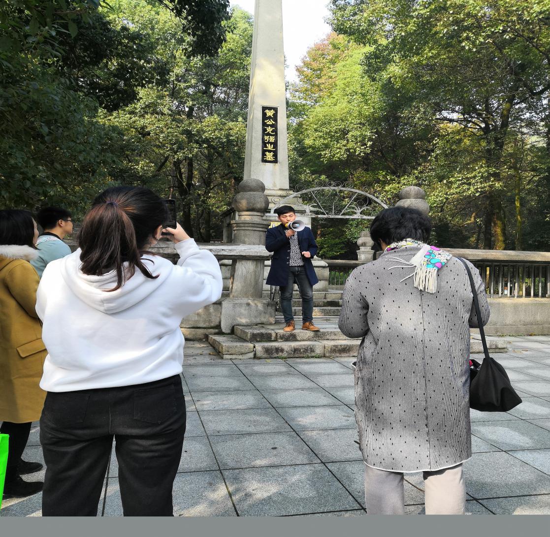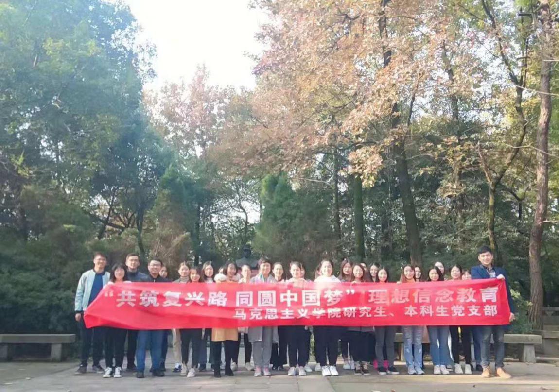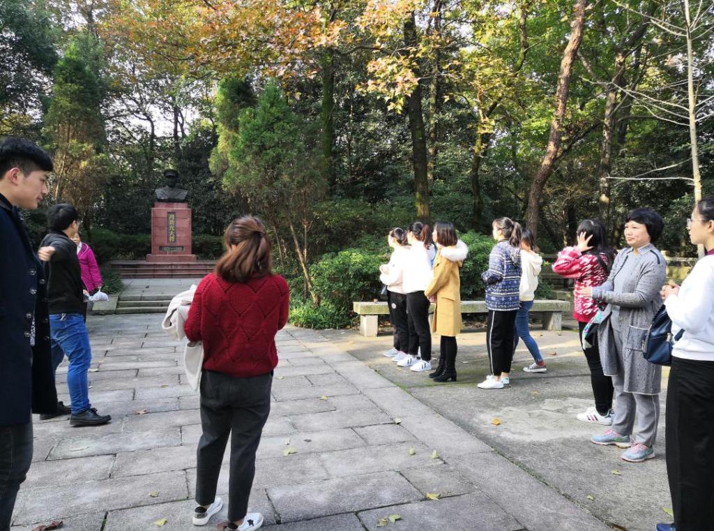 上午9点,同志们从云麓山庄出发到达活动第一站——肖劲光纪念园。研究生党支部成员李哲同志为在场党员进行解说,同志们了解到肖劲光是久经考验的共产主义战士,在他近70年的革命生涯中,历尽艰辛,百折不挠,勇于开拓,鞠躬尽瘁,为中国人民的解放事业和社会主义建设事业做出了杰出的贡献,特别在人民海军的创建和发展壮大上建立了不朽的功勋。听完后,大家都被其艰苦奋斗,不惧艰难险阻的革命精神所鼓舞,在新时代中国特色社会主义的事业中,更要发挥这种革命精神来建设国家。随后,大家来到了长沙会战纪念碑前,王慧祥同志介绍这里曾经是抗战时长沙会战的战时第九战区司令部战地指挥所旧址,岳麓山这座历史文化名山也是饱受战争的洗礼,埋葬了众多革命的英烈。听到这里,同志们心中再次被战争中为国捐躯的中国士兵的英勇形象所感动,内心充满敬意,也更加认识到要珍惜当前和平的幸福生活,早日实现中华民族的伟大复兴!本科生党支部书记陈力瑞同志为大家介绍黄兴,他为推翻帝制、缔造共和,历尽艰险,戎马半生。实为民国之开国元勋,功垂千古。章太炎先生悼黄兴挽联:无公则无民国,有史必有斯人。当下新时代青年更应该饮水思源,怀着崇高的敬意去缅怀这些历史伟人.在王丹同志的解说下,大家来到了爱晚亭,同志们了解到爱晚亭是与陶然亭、湖心亭、醉翁亭并称中国四大名亭,也是革命活动胜地。毛泽东主席青年在第一师范求学时,常与罗学瓒、张昆弟等人一起到岳麓书院与蔡和森聚会爱晚亭下,纵谈时局,探求真理。同志们通过重游一代伟人毛主席经常学习的地方,将自己置身其中,能够真切感受到毛主席当年在此奋发图强的学习热情,以天下为己任的担当精神,通过这些具有特殊意义的建筑、文物与老一辈革命家进行对话,这对于年轻一代的党员更好成为有理想、有本领、有担当的青年有着重大的启发意义。