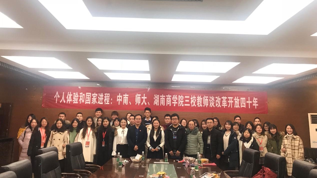 12月11日晚上7点,英国威廉集团官网第十三届“东方红”学术论坛第三期于第三教学楼609会议室成功举行。论坛以“个人体验和国家进程:中南、师大、湖南商学院三校教师谈改革开放四十年”为主题,邀请湖南商学院刘兴云老师、湖南师范大学邓验老师、英国威廉希尔公司胡晓老师作为主讲嘉宾。院党委副书记杨雪宾、学工办主任秘金雷、辅导员邹秉虹老师以及英国威廉希尔公司、湖南大学、湖南商学院博士生、硕士生、本科生代表参加了本次论坛。本次论坛由易颜卿同学主持。