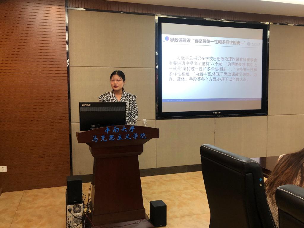 本次论坛主要围绕习近平总书记在思想政治理论课上的重要讲话中的“八个相统一”展开。李京结同学围绕“主导性与主体性相统一”,认为要发挥教师主导性,注重启发与引导;重视学生主体性,提高其主动性与创造性,并阐述了单主体说,双主体说,多主体说,主体间性(主体际性)说。王娇林同学围绕“政治性与学理性相统一”从四方面介绍了思政理论课的政治性要求和学理性要求,坚决反对割裂政治性与学理性。羊丽雅同学从“知识性与价值性相统一”展开,以思想政治理论课的知识性与价值性“是什么?”、“发展开展现状”和“如何正确认识和把握”进行了深入的分析。冯小倍同学从“建设性和批判性相统一”展开,认为注重建设性的同时,绝不能忽视其批判性和斗争性。徐茂盛同学围绕“理论性与实践性相统一”,结合自身实践经历,认为大学生要积极学习理论,勇于投身实践。刘亚萍同学围绕“统一性和多样性相统一”,夹叙夹议,从“坚持马克思主义指导”、“创新思政教材”、“拓展课程教学主渠道”和“坚持灌输理论”四个方面阐述了“统一性和多样性相统一”的内容。黄洁萍同学以“灌输性与启发性相统一”为切入点,从“启发教育的合理性和有效性”、“以灌输为启发提供方向和理论上的指导”和“以启发增强灌输内容的效果”三个方面进行了论述。郑丽丽同学以“显性教育与隐性教育相统一”为切入点,深入浅出的探讨了“课程思政”与“思政课程”之间“同向”、“同行”的关系,提出要建立“以一导多”的运行机制,紧扣“四个正确认识”。