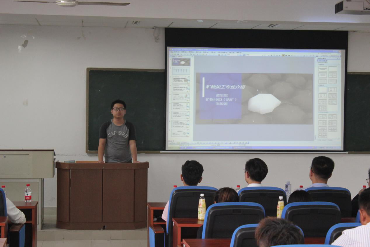 宣讲会中,各专业的优秀毕业生都拿出了精心准备的PPT来全面展示各专业的特色。来自矿物加工的张银涛和陆彪结合自身理解诙谐幽默的讲解了矿物加工专业的含义及所学课程,并亲切的为同学们提供了未来学习的方向。来自无机非金属的刘洋从国家战略、学院专业特色和毕业后的方向为同学们整体分析概括了无机非金属专业的优势。铁道工程专业的孟晓白和胥文涛以在座同学的角度分析了铁道工程专业的长处、从专业优势、学科排名、师资力量、实验器材及毕业生去向着手吸引了同学们的注意力,展示了铁道校区的风貌,让同学们充分了解了该专业的特点。采矿工程的汪富和李传奇,解释了采矿工程专业的重要性及其解决的问题,为同学们详细的解释了专业优势和就业环境。资源勘查专业的冯玉龙和方舒彬以其生动详实的经历给同学们展现了资源勘查专业的特色,并给同学们提出了有利于未来学习生活以及未来人生规划的深刻建议。环境工程专业的程勋强为同学们总体概括了环境工程专业的特色及优点并分析介绍了有利于同学们毕业后的几个方向。王海鹰教授介绍了环境工程专业的特色、细分了环境工程专业所涉及的专业及课程、为同学们拓宽了视野,给同学们展现了环境工程专业的别样魅力,赢来了全体同学的关注。
