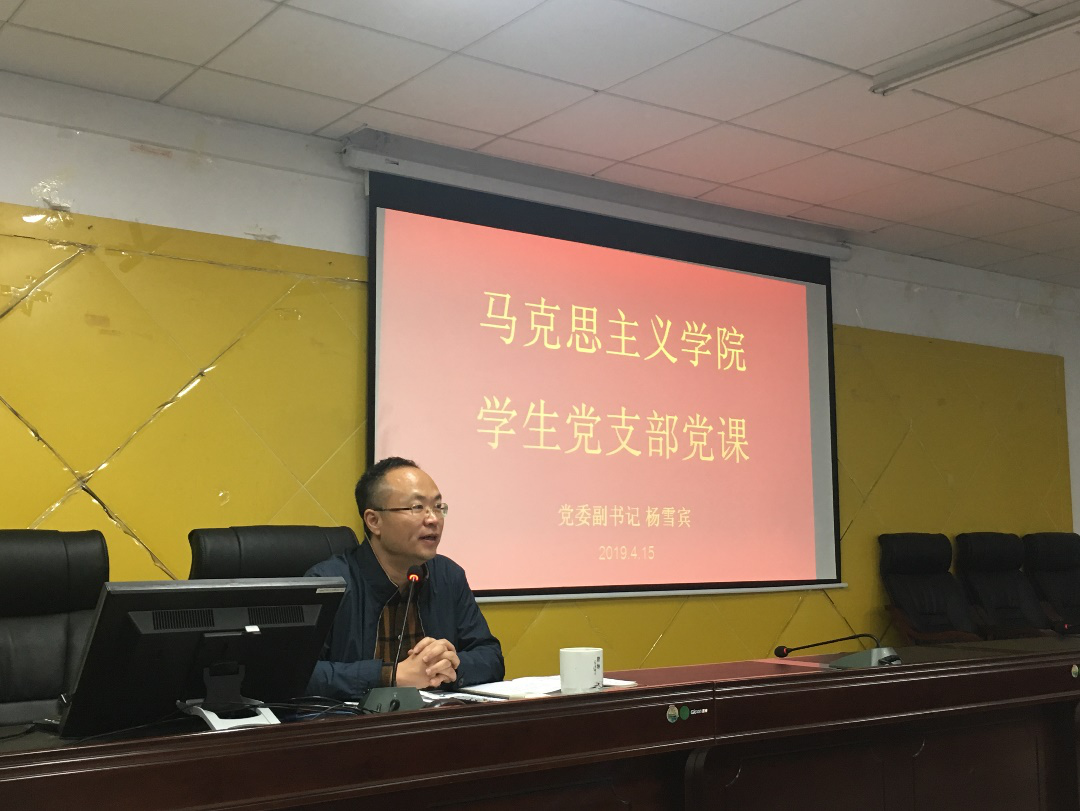 2019年4月15日晚8点,杨雪宾副书记在三教407为本科生党支部和研究生党支部的全体党员讲授党课,主题是“准确把握理直气壮的实质内涵”。