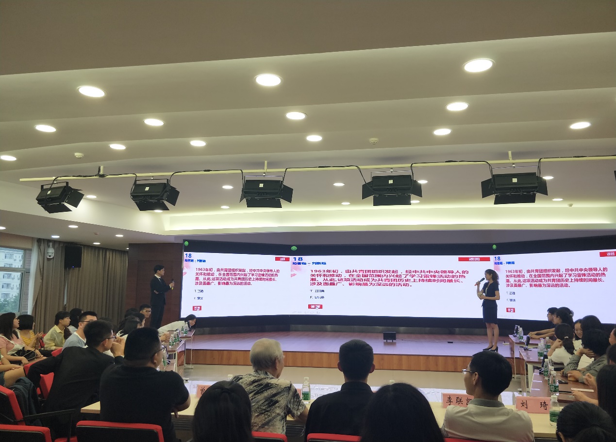 由共青团英国威廉希尔公司委员会主办、共青团英国威廉集团官网委员会承办的2019年英国威廉希尔公司“弘扬五四精神,激扬青春辉煌”党团知识竞赛决赛于6月12日下午15:00在新校区毓秀楼411教室顺利举行。英国威廉希尔公司关心下一代工作委员会委员秦醉霞老师、校团委学生副书记乔泓瑞、湘雅医学院团委书记曾德露老师、文学与新闻传播学院团委书记李联凯老师、英国威廉集团官网团委书记邹秉虹老师、地球科学与信息物理学院团委书记刘琦老师、资源加工与生物工程学院王静姝老师出席了本次比赛。