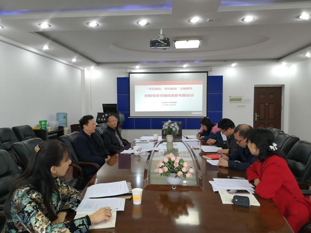 11月13日下午,马克思主义学院党委于520会议室召开对照党章党规找差距专题会议,学院党委书记王希俊主持,校党委第五指导组副组长刘喜到会指导。