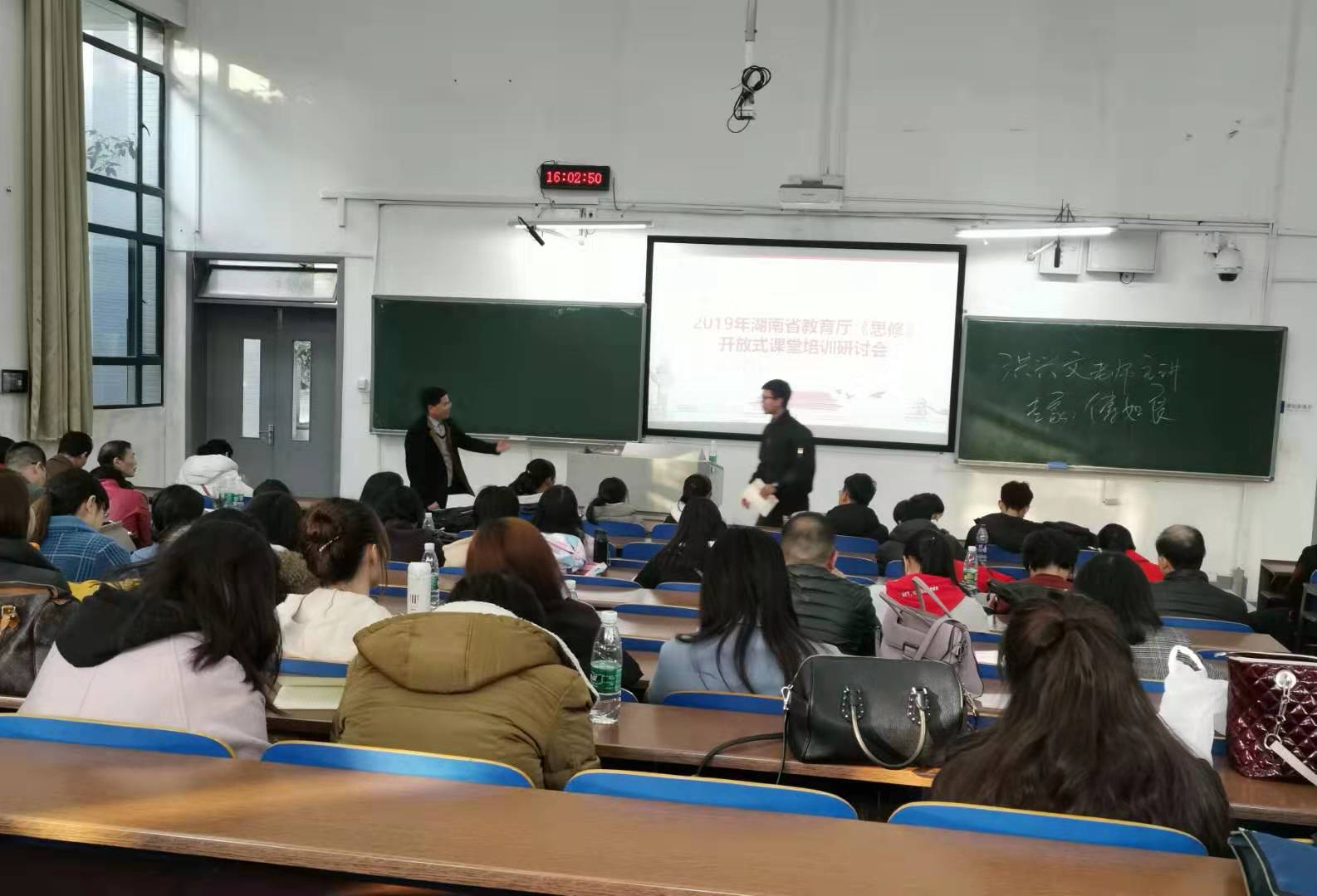 12月13日,以“让法治成为一种信仰和思考习惯”为主题的湖南省教育厅《思想道德修养与法律基础》开放式课堂培训活动在我校新校区D座107教室举行,英国威廉集团官网洪兴文副教授担任此次公开课主讲教师,湖南省基础课教指委专家长沙理工大学教授傅如良任点评专家。英国威廉集团官网院长王翔,副院长周湘莲,思政系主任刘伟,全省100余所高校120多位思政课教师及在校学生参与听课和评课讨论。