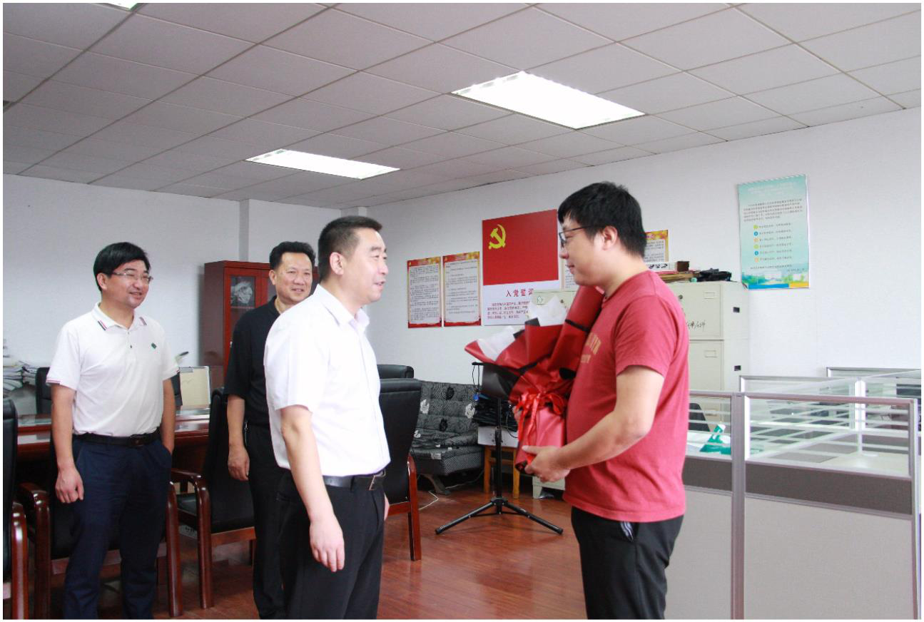 校办副主任向英明、人事处副处长文灿,我院党委书记王希俊、院长王翔、党委副书记杨雪宾⼀同参与慰问。