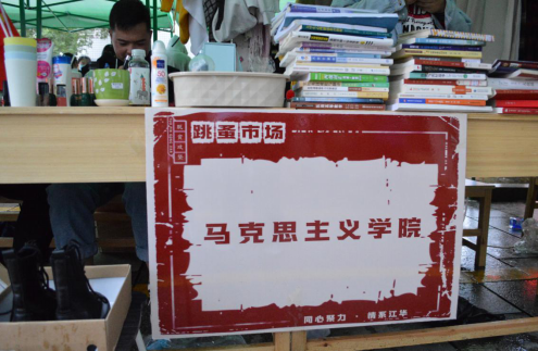 10月15日早上8时左右,我院团学会成员展开跳蚤市场摊位摆放的准备工作,阴雨天气也无法阻挡同学们的热情,摊位布置工作紧张有序的进行,我院摊位摆放整齐,物品分门别类,错落有致。小到指甲油,钥匙链,大到电脑包,木吉他,床上书桌,我院学子捐献的物品既有日常生活用品也包含各种书籍,覆盖校园生活衣食住行,兼具实用与美观功能。