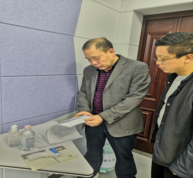 郭鹏飞老师就智慧教室和教学实验室的用电安全问题、疫情期间卫生安全问题、实验室安全管理情况进行汇报,并对其相关器材、设备、使用登记台账及使用途径进行详细讲解。