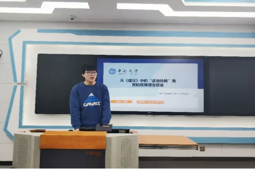 刘依芷以“繁荣文化事业和文化产业,提高国家文化软实力——十九届五中全会中文化建设领域的交流汇报”为题,从提高文化软实力方面理解十九届五中全会的目标,鼓励马院学子们自觉承担起新形势下宣传思想工作的使命任务,做到真正的在马言马。